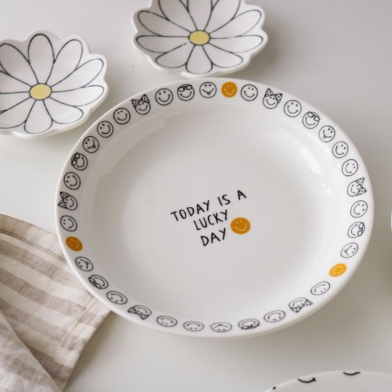 ☁สไตล์เกาหลี น่ารัก ลายยิ้ม จานเซรามิก ตัวอักษรภาษาอังกฤษ จานขนม ผลไม้ …