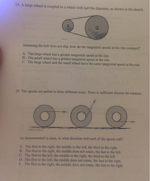 Solved 24. A large wheel is coupled to a wheel with half the | Chegg.com
