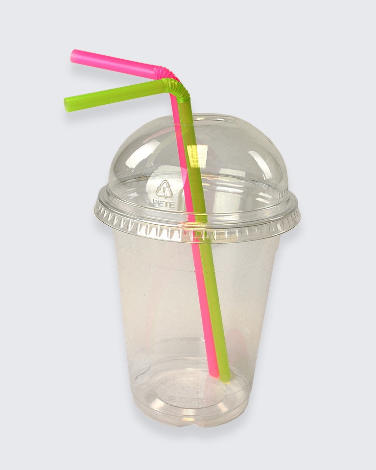 clear plastic cup with lid and straw