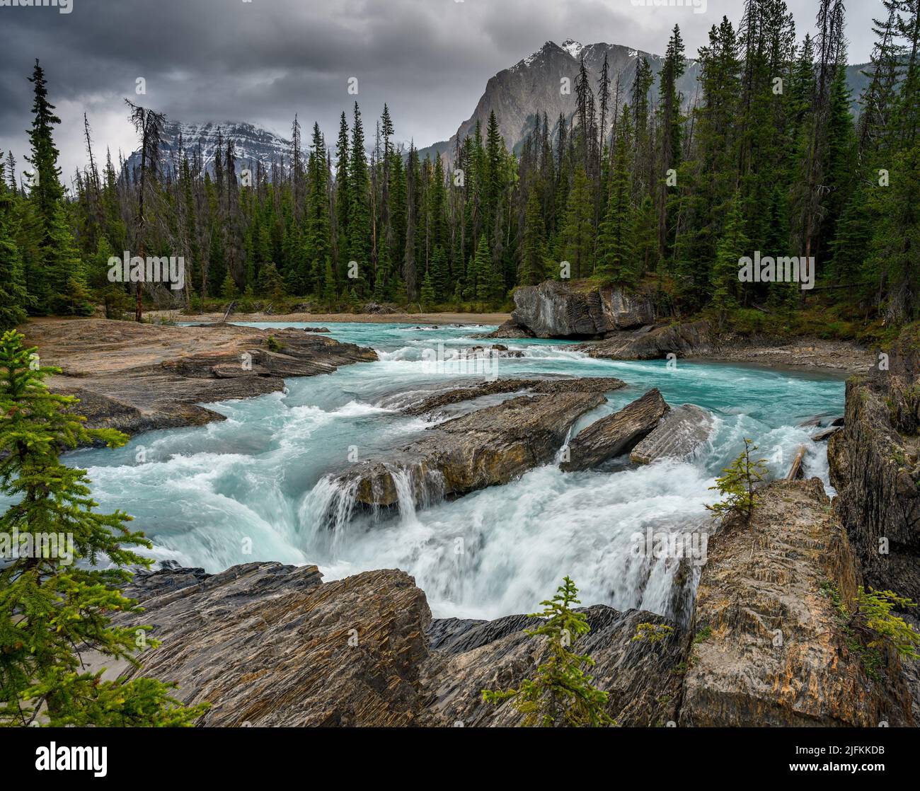 The Kicking Horse River flows down from the mountains, became a …