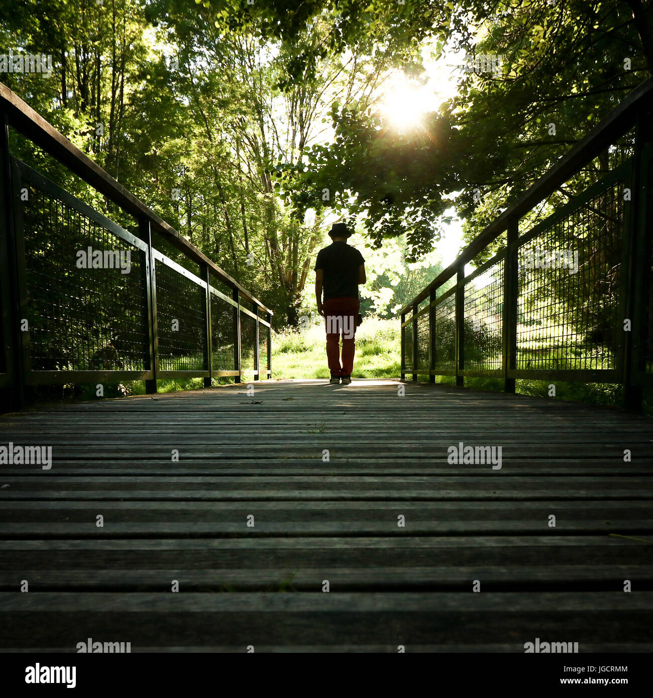 Man on bridge in forest hi-res stock photography and images – Alamy