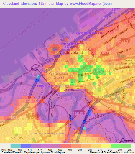 Elevation of Cleveland, OH, USA – Topographic Map – Altitude Map