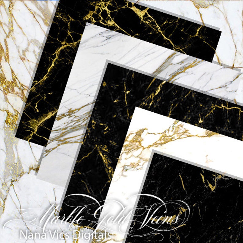 Marble Digital Paper White / Black Marble With Gold Veins – Etsy Australia
